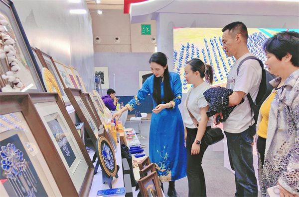展会现场,云南工商学院通过作品展示、工艺介绍、现场推介等方式全方位、多视角展示了特色非遗、创业产业等发展的新成果、新亮点。彝绣工作室充分展示了彝族非遗特色元素历史悠久、文化底蕴深厚的独特魅力;“南石斛”团队在传播石斛文化的同时,力求打造出一个国际化石斛精加工基地,助力实现产业振兴;滇穰团队展示了将科研、繁育、销售融于一体的专业化种子种苗模式……由学校人文艺术学院教授谢晶带领创立的“翠羽银丝”名师工作室在展会上大放异彩。