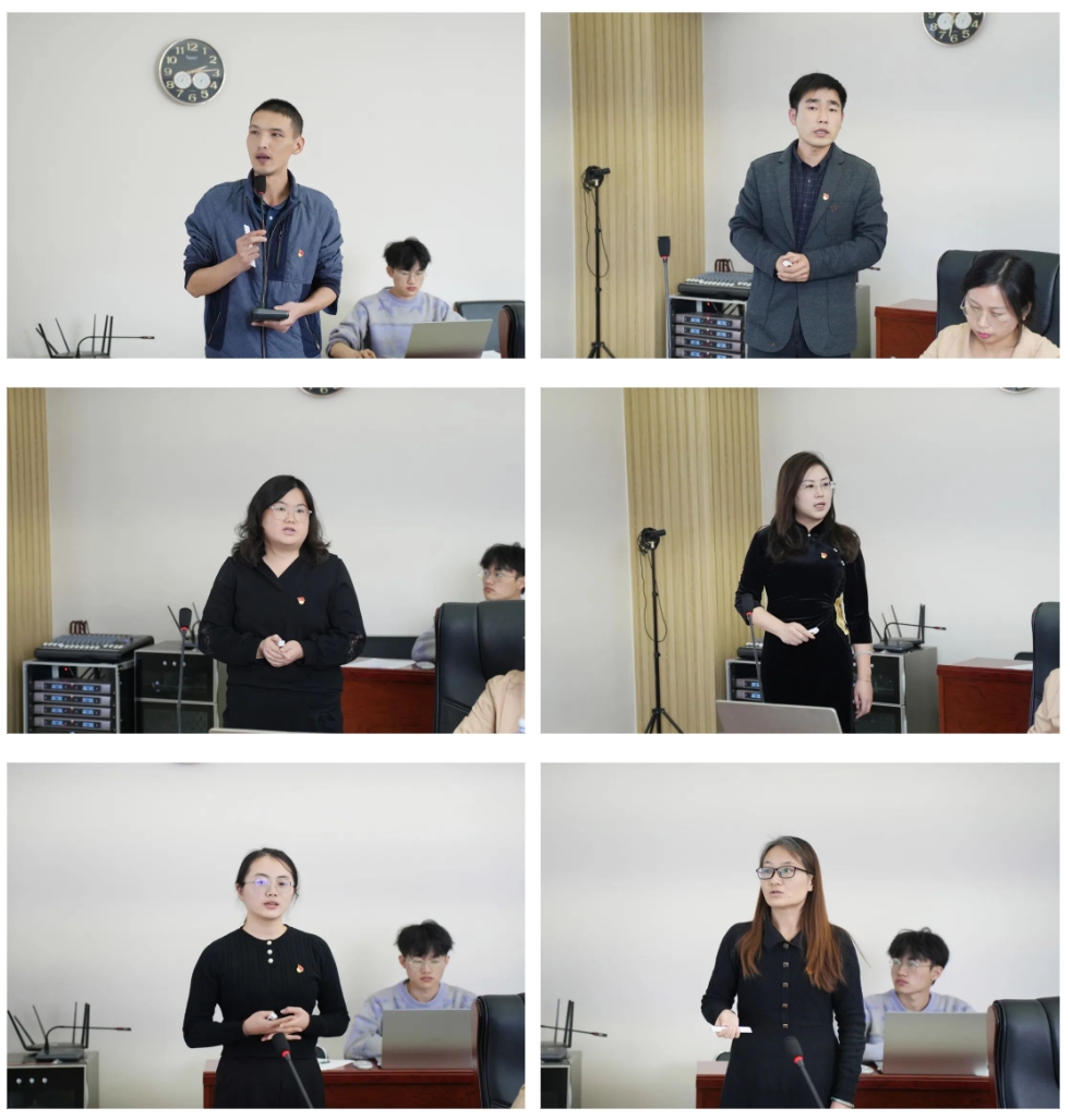 来自建筑工程学院党总支、智能科学与工程学院党总支、会计学院学生第二党支部、智能科学与工程学院学生第一党支部、建筑工程学院教工党支部、马克思主义学院第一党支部的基层党务工作者围绕“落实主要任务、健全制度机制、增强整体合力、突出工作成效、两年建设计划”等方面进行展示。生动展现了各基层党组织在打造党建品牌特色、推动“一融双高”等方面的工作成效。