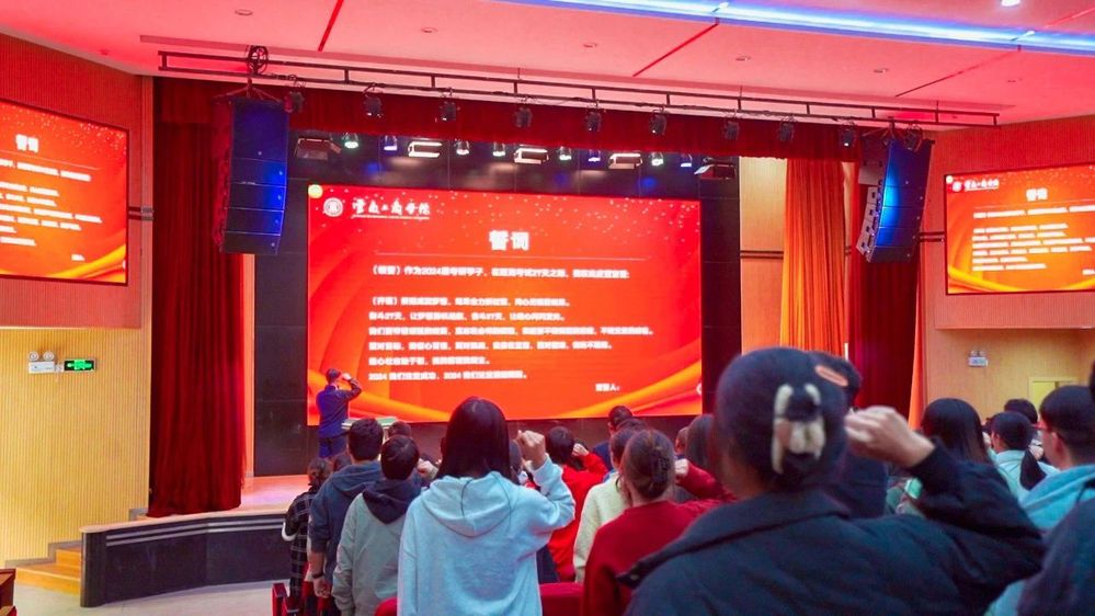 考研学子的铮铮誓言响彻会场、青春豪迈,这是对考研必胜的青春告白,更是对自己百日冲刺的鼓劲加油。