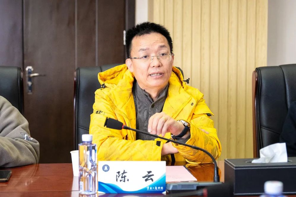 姬其佐执行董事长代表学校欢迎陈云院士一行,并介绍了学校的发展历程、师资建设、产教融合、办学成果与发展规划,希望以此次交流为起点,加强合作、共享资源、共同发展。