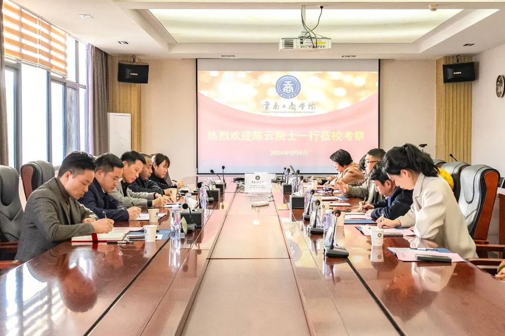 2月8日,欧洲科学院院士、法国法中协会副主席陈云及助理姜无忌,中国旅游研究院暨云南省旅游规划院原院长姜若愚教授,昆明理工大学罗璟教授,昆明理工大学资产经营有限公司总经理袁锐波,云南水善投资公司董事长张雅伟及总经理助理姜静一行到访云南工商学院,就筹办中法香水学院、发展云南芳香产业等进行调研。