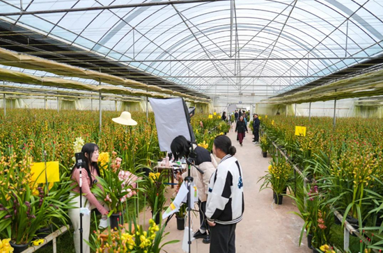 “黄金岁月、大红袍、尚品、碧玉……各种类型的大花蕙兰总有你喜欢的一款,现在下单就送一盆小苗……”“1号链接,早拍早发货……”在寒假“摇”回家的热潮中,云南工商学院学子们过着不一样的假期,他们未毕业已就业,在学校校企合作单位——云南绿山源农业科技有限公司大花蕙兰种植基地和嵩明昊霖苗木种植有限公司高山杜鹃盆花新品种示范基地,3人一组搭建起成熟直播团队。