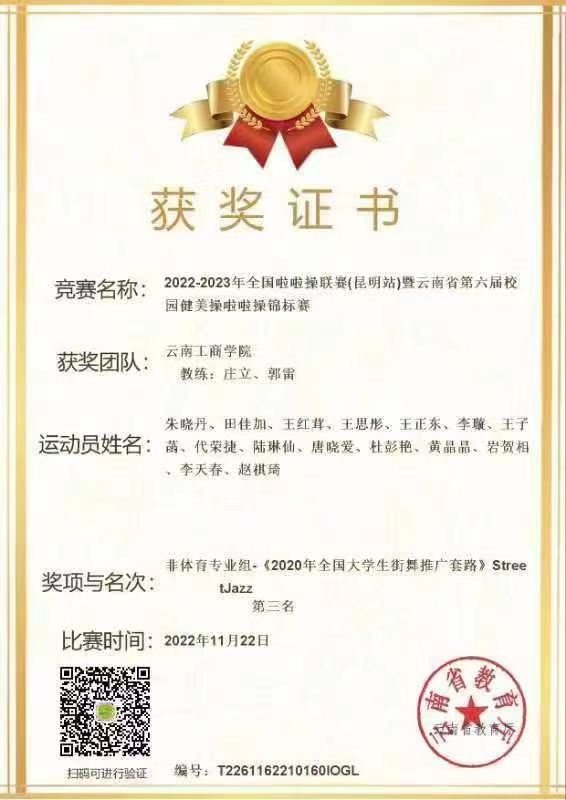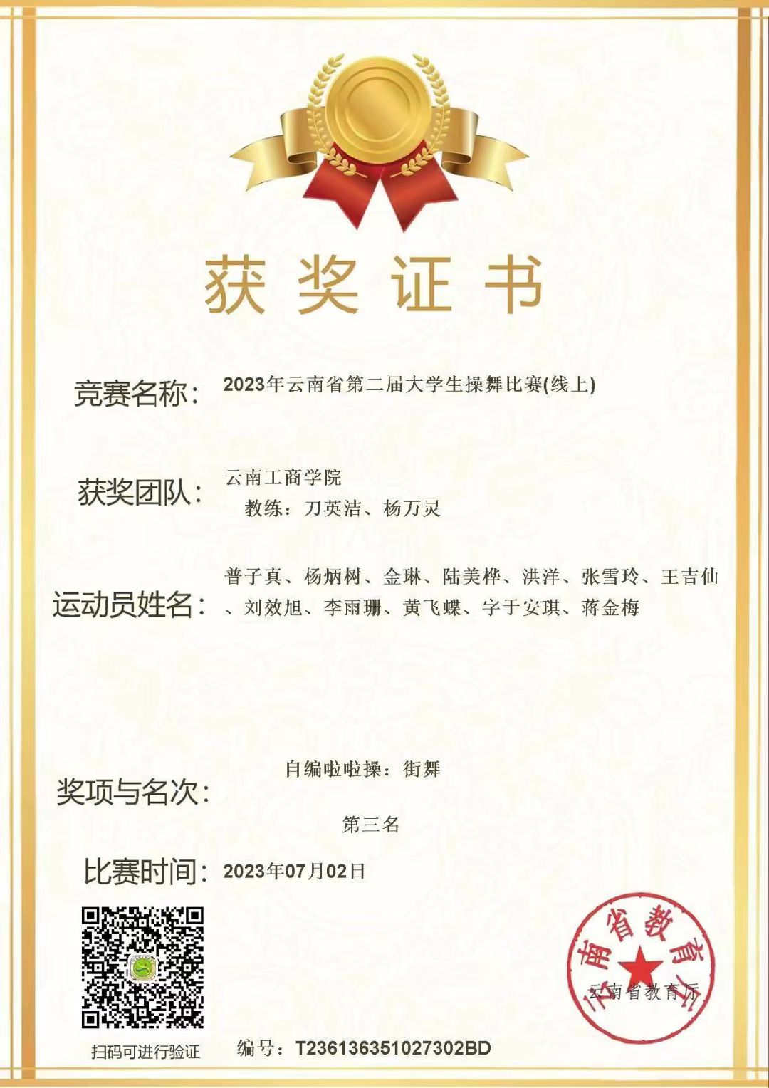2023年云南省第二届大学生操舞比赛中荣获第三名