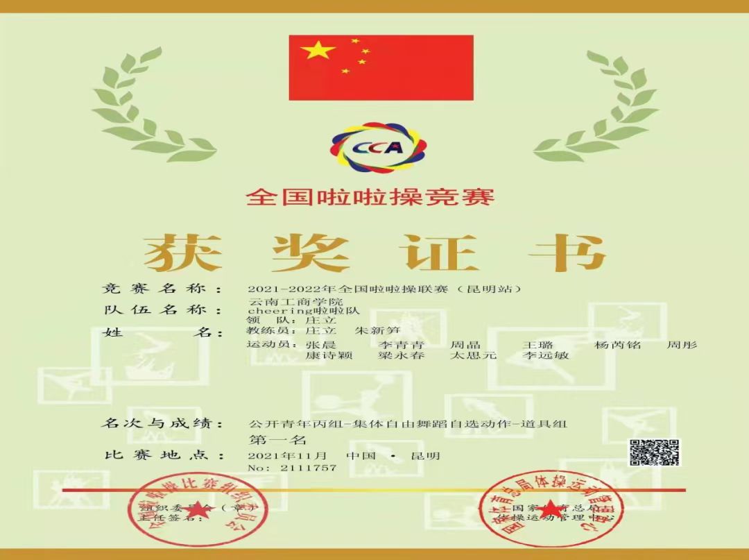 2021-2022年全国啦啦操联赛(昆明站)青年丙组荣获第一名