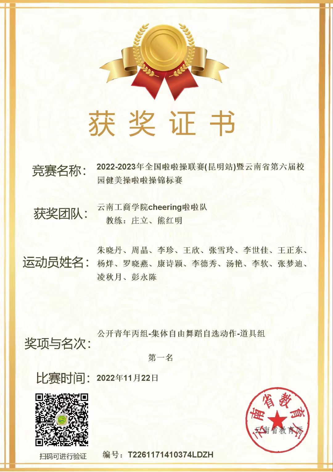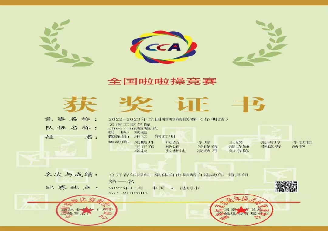 2022-2023年全国啦啦操联赛(昆明站)青年乙组中荣获第一名