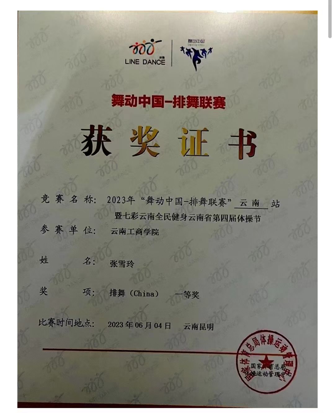 2023年“舞动中国-排舞联赛”云南站中荣获一等奖