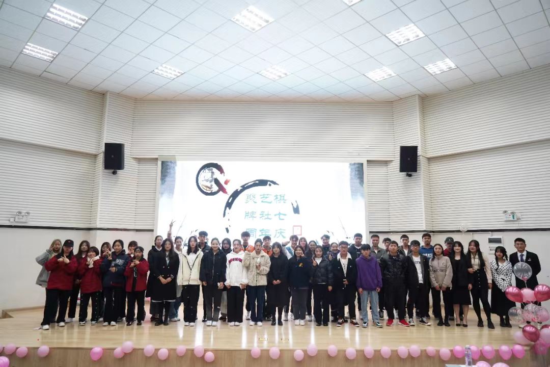 聚艺棋牌社成员在不影响学习的情况下,每周开展一次活动进行棋类技艺的精进,每个学期都会面向全校开展比赛,让更多的同学了解到聚艺棋牌社。成员们也友好相处,在活动中积极参与,以棋会友,以牌交心,共同进步。