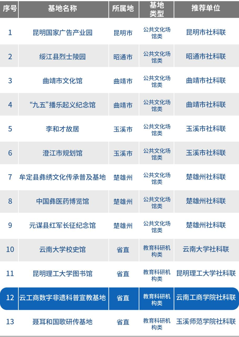 近日,云南省社会科学界联合会下发《2024年度云南省社会科学普及示范基地拟命名名单的通知》,授予30个单位“云南省社会科学普及示范基地”称号,云南工商学院成为本年度同类院校中唯一获此称号的高校。