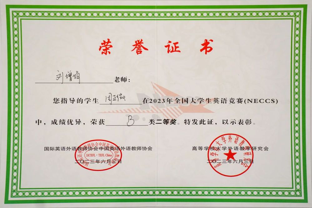 之所以得到学生的喜爱,离不开刘增娟严谨的教学态度。她把助力学生成长成才视为人生最大的乐趣和追求,用实际行动诠释着不负韶华不负学生。她组织学生成立了英语演讲社团,为学生创造展示外语能力、沟通能力的平台,鼓励指导学生参加全国英语演讲、写作、阅读大赛等比赛并多次获奖,开拓了学生视野、提升了学生能力。