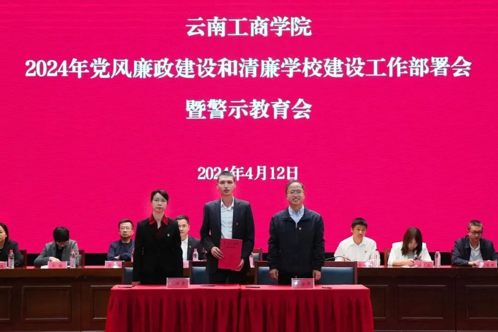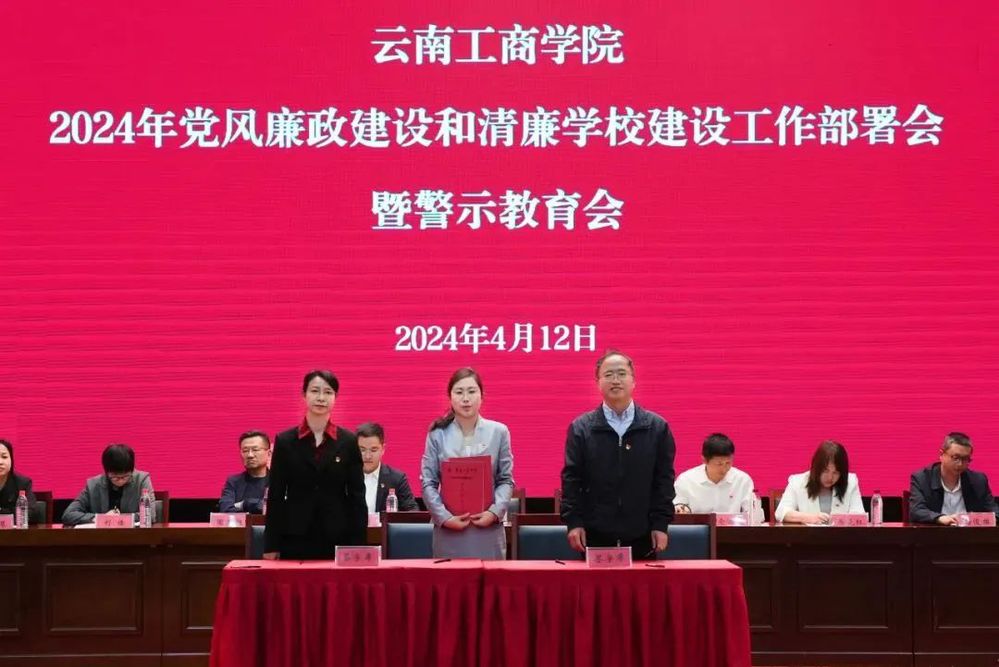 4月12日,云南工商学院召开2024年党风廉政建设和清廉学校建设工作部署会暨警示教育会,学校党政领导班子成员,校属各单位负责人,各党总支书记、专职副书记、专职组织员、宣传委员、统战委员、纪检委员,各教工、学生党支部书记,党委七部一室党务工作者参加会议。会议由党委副书记、常务副校长周刚主持。
