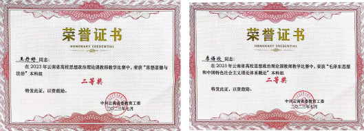 通过多形式深化教学改革,多方法拓展课程建设内涵,完善教学工作体系建设,强化教学要件和课堂教学的规范性建设,提高对课堂教学内容的整体性和内在逻辑性研究。近年来,马克思主义学院课程入选省级思政课精品课程1门、省级课程思政示范课程1门,获批省级课程思政教改项目立项2项。2023年全省思政课教学展示、教学比赛中,荣获一等奖1项、二等奖2项,三等奖4项。