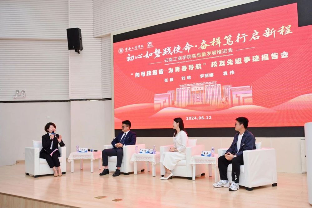 广大校友在各行各业以出色的成绩为学校赢得良好声誉,汇聚成了云南工商学院薪火相传、永葆生机、奋勇前行的不竭动力。本次报告会邀请到2019级计算机网络技术专业校友、云南恒训实业集团董事长刘晗,2018级视觉传达设计专业校友、华为北京分公司设计师袁伟,2015级会计学专业校友、泰国兰塔纳攻欣皇家理工大学教师李丽娜进行先进事迹报告。