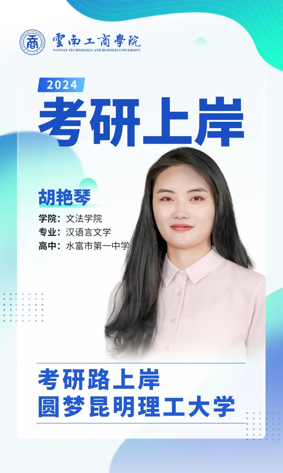 大家好,我是胡艳琴。高中毕业于水富市第一中学。今年考研顺利上岸昆明理工大学国际中文教育专业。我坚信,我的勇敢从未辜负我的青春,选择了考研,就选择了风雨兼程。