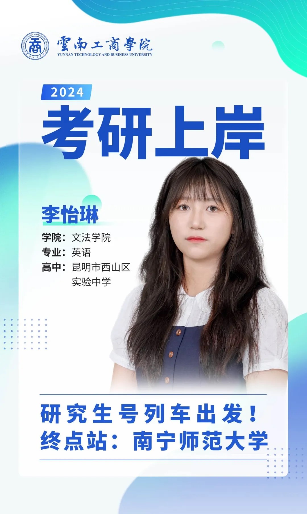大家好,我是李怡琳。高中毕业于昆明市西山区实验中学,今年考研顺利上岸南宁师范大学。大学期间曾获得云南省省政府奖学金,还获得过校级优秀毕业生、校级优秀共青团干等称号。参加比赛获得全国大学生商务英语语言能力三等奖;“外研社·国才杯”全国大学生外语能力大赛阅读比赛校级一等奖;全国大学生英语竞赛专业组校级二等奖;第一届国家安全教育周视频拍摄一等奖等。