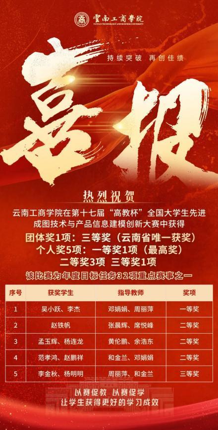 本届大赛以培养学生的工匠精神,激发学生的创新意识,探索图学的发展方向,创新成图载体的方法与手段为宗旨,共吸引了来自包括北京航空航天大学、武汉大学、哈尔滨工业大学、华中科技大学、同济大学、华南理工大学等895所高校近40万学生参赛。经过各省市校赛、省赛的层层选拔,最终共有12000余名学生脱颖而出,入围全国总决赛。经过激烈角逐,云南工商学院建筑与设计学院的9名学生从中脱颖而出,赢得荣誉。