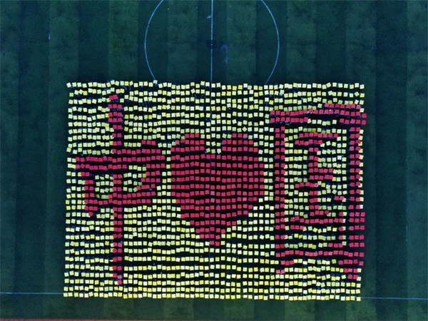 1800名学子以身体为画笔,共同绘制出一幅幅图案。他们用行动展现出对祖国的拳拳之心,表达对祖国的无限热爱。