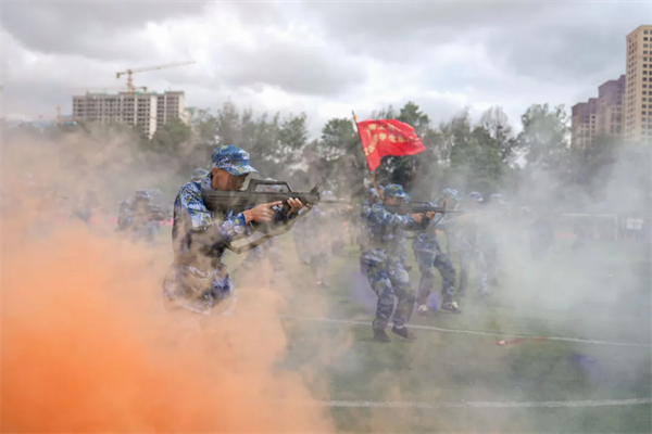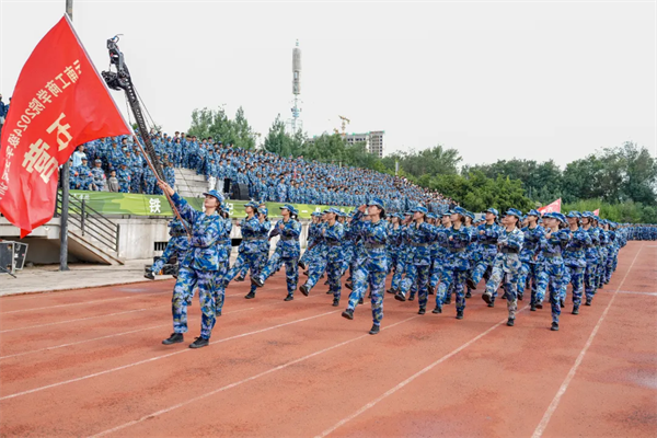 典礼在庄严的国歌声中拉开帷幕。分列式开始,2024级新生以9个营64个连,7个分列式方阵整齐列队。他们迈着整齐划一的步伐,喊着高昂响亮的口号,自信果敢、英姿勃发,有序通过主席台接受检阅,21天的磨炼在此刻交上优异的答卷。