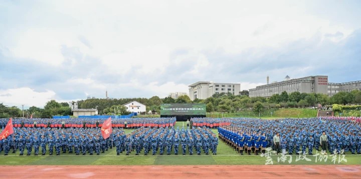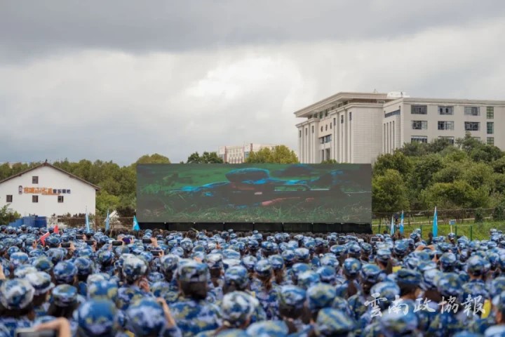校长蒋永文在结训讲话中充分肯定此次军训的成果。他表示军训不仅仅是一场体力的考验,更是一次心灵的洗礼,一次意志的磨砺。学子们在21天的军训中掌握了基本的军事技能和国防知识,身体素质得到了显著提升,纪律观念得到了进一步强化,集体荣誉感和爱国主义精神得到了进一步激发。他提出军训结束意味着新征程的开始,希望同学们能够将军训中养成的良好习惯、锤炼出的坚强意志、培养出的团队精神带入到今后的学习和生活中去,继续保持良好作风、坚定理想信念、练就过硬本领,不断追求卓越、勇攀高峰,在云南工商学院交出理想的青春答卷。军训这堂大思政课,历经21天落下帷幕。活动最后,全体同学共同观看此次军训的纪录片,有校领导、全体教官、教师代表,提前录制的结训寄语,还有从军训动员大会开始,新生集体生日会、中秋晚会,25公里徒步拉练到今天的结训演练回顾,一幕幕精彩而难忘的瞬间,让同学们热泪盈眶。
