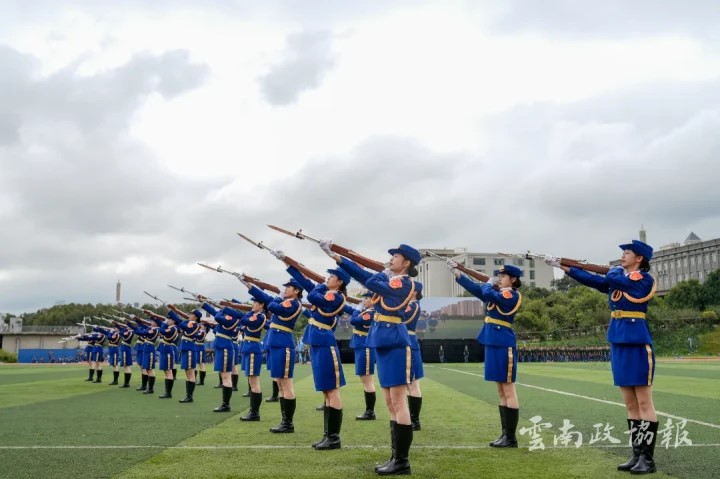 踏步、转身、出枪,排面整齐、动作有力,枪起枪落间充满力量与美感,她们用阳光和朝气书写着青春,尽显巾帼不让须眉之风采。