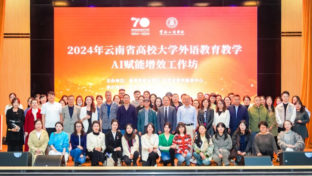 近日,2024届云南省高校大学外语教育教学AI赋能增效工作坊在云南工商学院召开。本次活动由高等教育出版社、云南省教学服务中心主办,云南工商学院文法学院承办。云南工商学院副校长马晓红,云南工商学院文法学院院长祁雄,昆明理工大学、云南师范大学、云南中医药大学、楚雄师范学院、昆明城市学院等省内高校外语学院教师代表应邀出席,云南工商学院文法学院管理干部、师生代表300余人参加活动。活动由文法学院学术院长彭庆华主持。