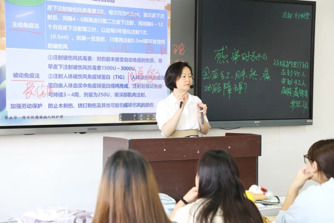 冰心先生说:“爱在左,情在右,走在生命的两旁,随时播种,随时开花。”这是对教师和医务工作者职业的真实写照,如果能同时拥有这两个身份,那将是一件很幸福的事。为了能更好地教书育人,赵寅老师苦心钻研,用心教改,爱心育人。在教学过程中,赵寅老师注重实践教学,想方设法调动学生学习的积极性,她让学生课前参与教案设计,同时及时给予学生指导与帮助,根据学生意见建议改进教学设计。她使用翻转课堂的方法不断提升教学效果。课前运用云班课上传课程内容等资源,布置预习任务;课堂上以小组的形式汇报学习效果,采用小组自评互评和教师评价的方式激发学生的学习主动性;课后使用云班课进行测试,了解学生知识掌握情况,帮助学生固化学习效果,以获得更好的学习成效。