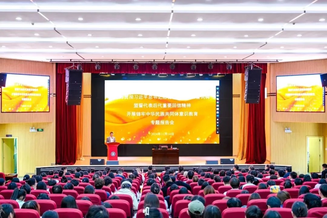 为深入学习贯彻习近平总书记给普洱民族团结誓词碑盟誓代表后代的重要回信精神,持续开展好学校铸牢中华民族共同体意识教育,11月14日,普洱市宁洱县委党校校务委员吴卓嶧,普洱民族团结誓词碑盟誓代表后代方财兵、罗宗成应邀莅临云南工商学院开展专题宣讲报告会。报告会由学校党委副书记佘达文主持,党委书记李国琼出席会议。