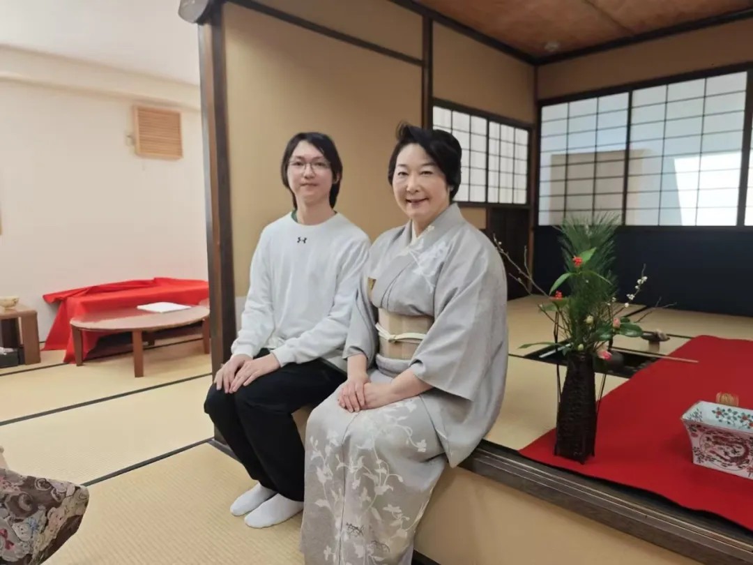 此次研学,同学们不仅走进了东京大学的课堂,更开启了一段丰富多彩的文化探索之旅。随着首日校园参访的结束,一场别开生面的茶道文化体验活动如约而至,于幽静雅致的环境中,在茶道师的悉心指导下,大家通过观摩茶具、学习点茶技法,一举一动间领悟和、敬、清、寂的茶道精髓,感受东方美学中那份独特的宁静与深邃。