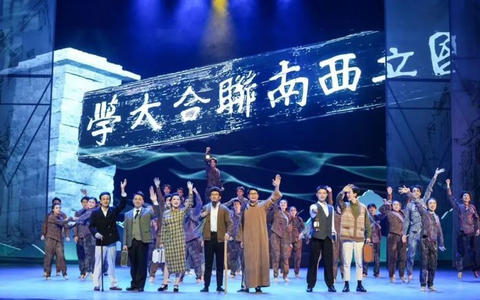 《西南联大》由云南师范大学师生精心打造,以抗战时期西南联合大学的历史为背景,综合运用音乐、舞蹈、朗诵等多种艺术形式,将联大师生在战火中坚守学术、探寻真理的感人故事鲜活地呈现在舞台上。100 余人的演职团队,涵盖了云南师范大学艺术类专业教师、在校学生和优秀校友,他们凭借专业的技艺与真挚的情感,重现了那段充满热血与奋斗的岁月。