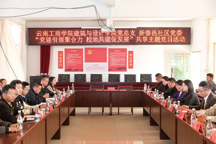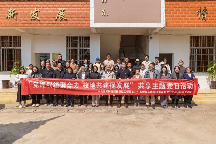 3月12日,云南工商学院建筑与设计学院党总支与嵩明县嵩阳街道新春邑社区党委联合举办“党建引领聚合力 校地共建促发展”主题党日活动。这是落实嵩明县与云南工商学院“助力乡村振兴・旅居发展校地战略合作协议”的重要举措。嵩阳街道相关领导、云南工商学院建筑与设计学院党总支党员、师生代表及新春邑社区共 50 余人参与。