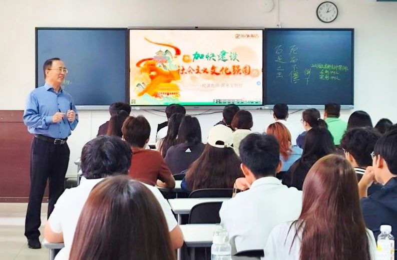 6月10日,蒋永文以《红楼梦》为文化切入点,引导工商管理、会计学专业学生思考“文化与强国的内在关联”。他采用启发式教学,从历史维度梳理文化强国与民族复兴的逻辑关系,以“创造性转化、创新性发展”为线索,全景式呈现文化建设的历史性成就。