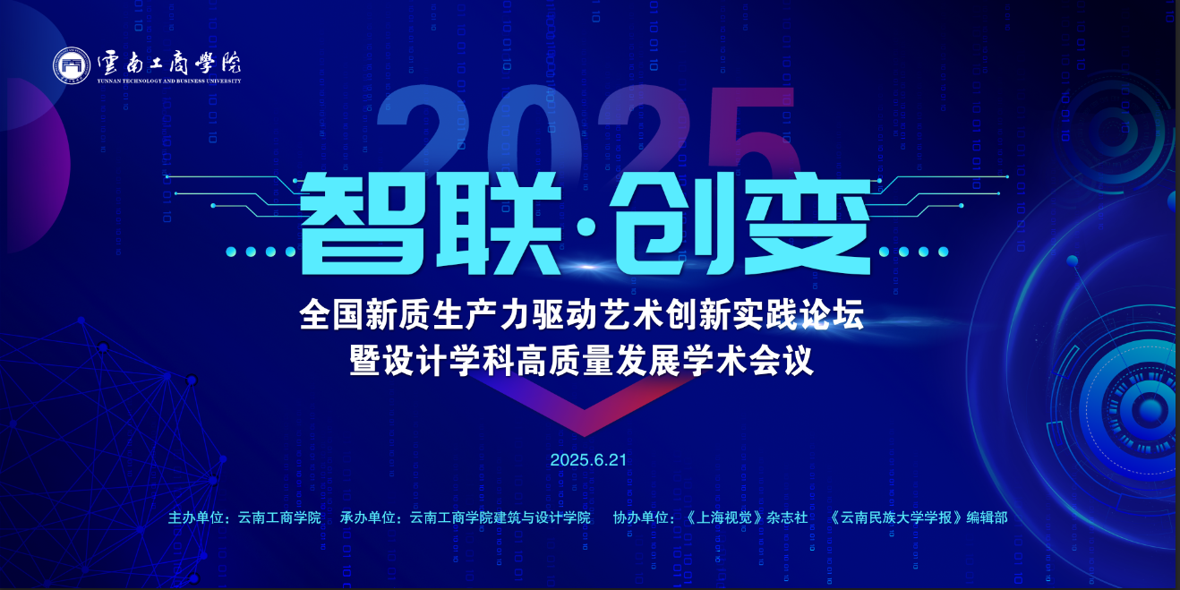 2025年6月21日由云南工商学院主办,《上海视觉》《云南民族大学学报》《昆明理工大学学报》共同协办的“智联·创变”新质生产力驱动艺术创新实践论坛暨设计学科高质量发展学术会议将在云南工商学院学术报告厅正式举行。
