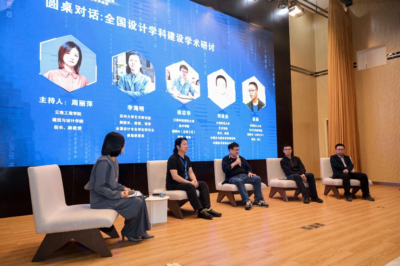 在“全国设计学科建设学术研讨”圆桌论坛上,周丽萍副教授担任学术主持,与苏州大学艺术研究院副院长李海明、江西科技师范大学徐志华教授、云南师范大学艺术学院院长刘连杰、昆明理工大学艺术与传媒学院副院长(主持工作)崔颖等专家,围绕“学科瓶颈与突破”“跨界协同机制创新”“地方高校特色化发展”等议题展开深度交流,并就人才培养与产业需求对接提出前瞻性建议。周丽萍在总结中表示,论坛共识将纳入后续学科建设行动方案,持续转化为教学与科研成果。