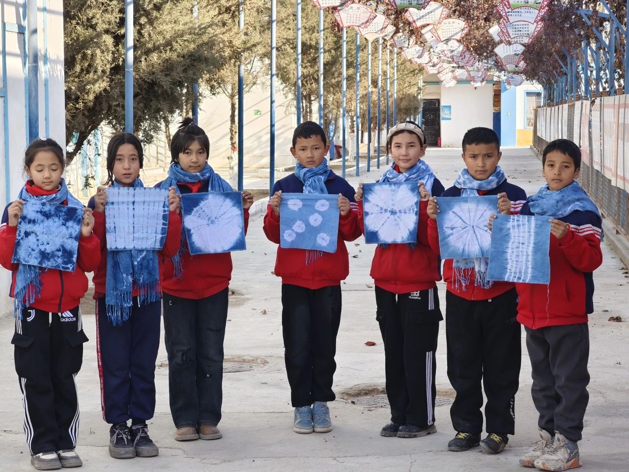 如今的扎染工作室已有20多名“小成员”,都是学校的学生,大家利用当地棉花纺织的土布做原料,用植物染料染色,设计扎染纹样,作品还在县里的文化创意大赛中获得了二等奖。更令人欣喜的是,学生家长也开始学习这门手艺,“没想到在家门口就能学手艺,以后说不定还能靠这个挣钱。”