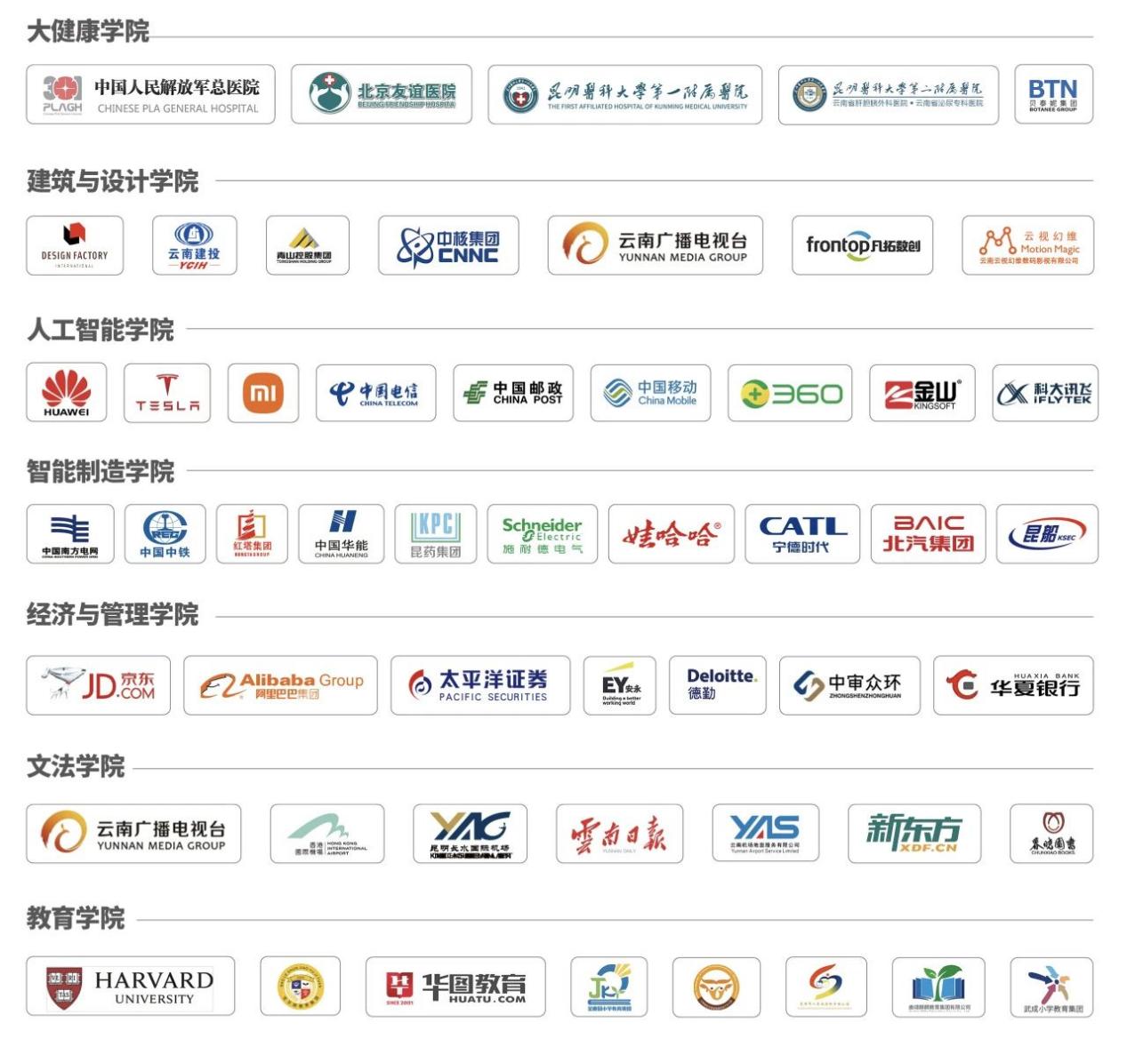云南工商学院与华为、阿里巴巴、京东、360等500余家企业开展深度合作,共建华为ICT学院、360网络安全学院等12个产业学院,全面对接产业需求。与北京301医院、北汽集团、昆明船舶设备集团等226家单位共建实习实训基地,全面引入企业真实项目进入课程,推动项目驱动教学。