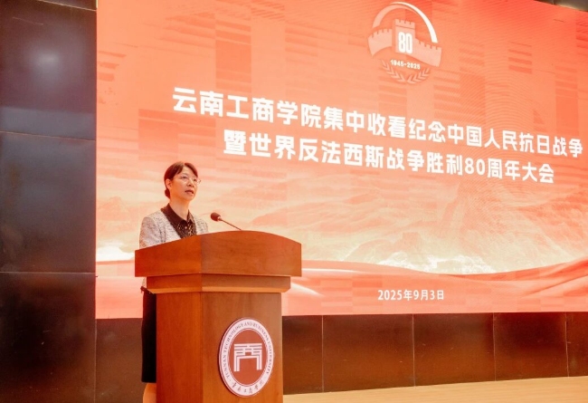 未来工作中,云南工商学院将持续推动抗战精神深度融入校园文化建设、思政教育与人才培养全过程,引导广大师生把对历史的深切铭记、对英雄的崇高敬意,切实转化为勤学笃行的扎实行动、担当奋进的强劲动力。并结合实际从三个方面扎实推进:一是深化习近平总书记系列重要讲话精神学习研讨,系统梳理核心要义与精神内涵,将其有机融入思政课教学体系,实现理论学习与课堂教学同频共振;二是统筹开展“强国复兴有我”主题纪念活动,充分利用红色资源,精心打造“开学思政第一课”,组织师生走进抗战主题展览、观看红色经典影片,让红色教育直抵人心;三是强化氛围营造与活动宣传,依托校园官网、户外大屏等多元载体,全方位展示活动成效、传播抗战精神,确保纪念活动入脑入心、取得扎实成效。