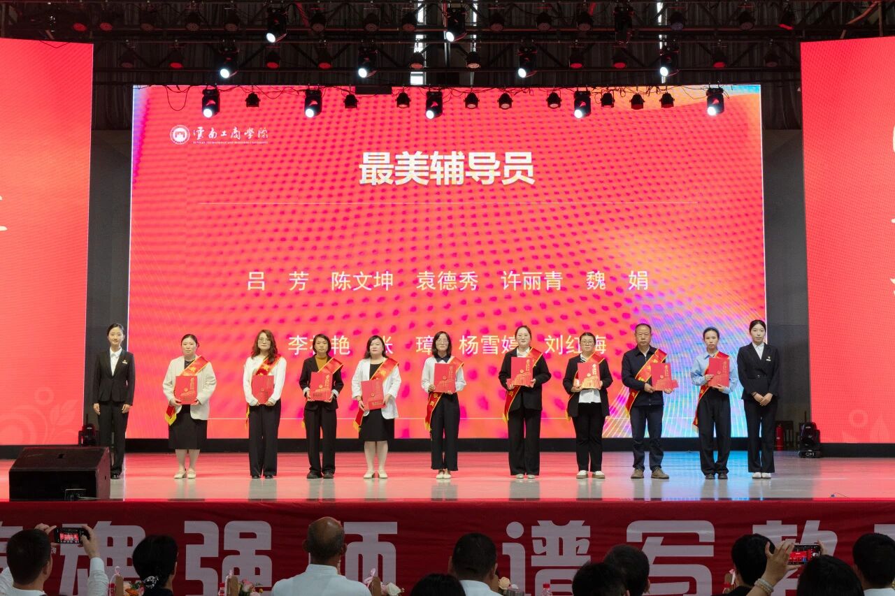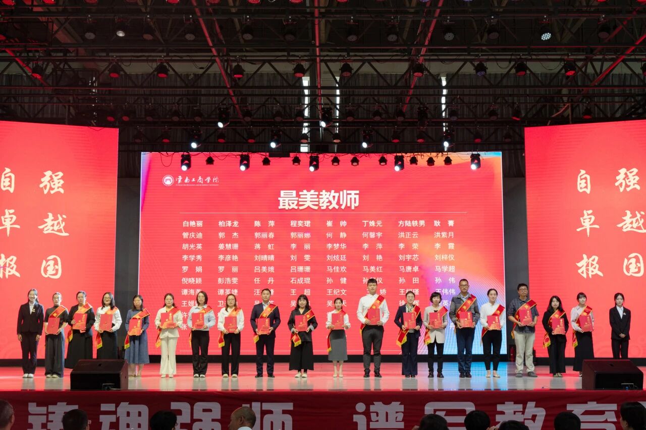 各奖项获奖教师代表上台发言,他们结合自身工作与实践,从不同角度分享了他们的育人经验与感悟,共同展现了一幅以学生为中心、全面育人、坚守使命的教育图景。他们分别从考研辅导、班级建设、教学创新、生活关怀等不同角度,生动体现了教育工作者对立德树人根本任务的深刻理解和实践。发言中不仅强调了科学规划、严格管理、学风建设等教育教学方法创新,更多次提到“用生命影响生命”“用真情传递真知”的教育情怀,突出体现了云工商教师对学生成长全程的陪伴、关爱与引领,折射出学校注重高质量发展、强化育人协同、倡导奉献与创新的教育理念,也充分展现了教育工作者扎根一线、甘于奉献、以生为本的精神风貌与职业担当。