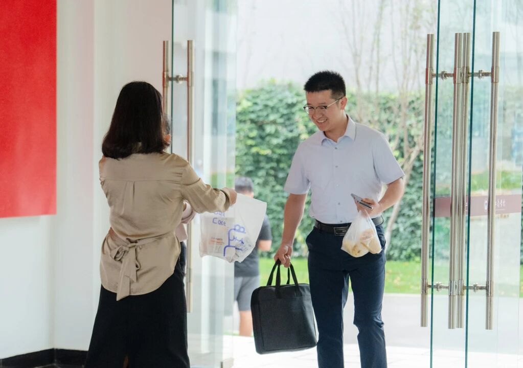 教师节清晨,党委书记李国琼,党委副书记、常务副校长周刚等学校领导就走进课堂,为老师们送上营养早餐表达一份清晨的问候;教师休息室也布置了温馨茶歇区,甜品、咖啡、鲜花相伴,让老师们在课间休憩时也能感受节日的甜蜜与关怀。