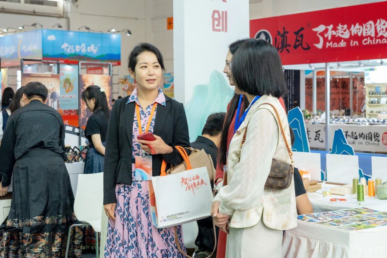 云工商展位前观众络绎不绝。“原来非遗文化可以这么酷!”“很想买一把扇子背一个同款包”——这些真诚的反馈让师生们倍感欣慰。通过现代设计语言重新诠释非遗文化元素,非遗不再是遥远模糊的概念,而是变成了可触摸、可使用、可传播的日常物件。此次参展不仅是云南工商学院在文化创意人才培养与实践教学上的一次集中成果展示,更让师生们对非遗文化的当代转化有了更深理解。通过文博会平台,这些作品成功跳出了传统地域文化的传播局限,用“青春态”的表达实现了文化破圈,让传统文化以更加鲜活的方式走进现代生活。