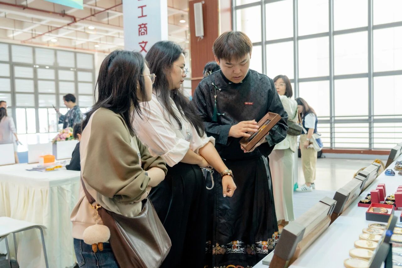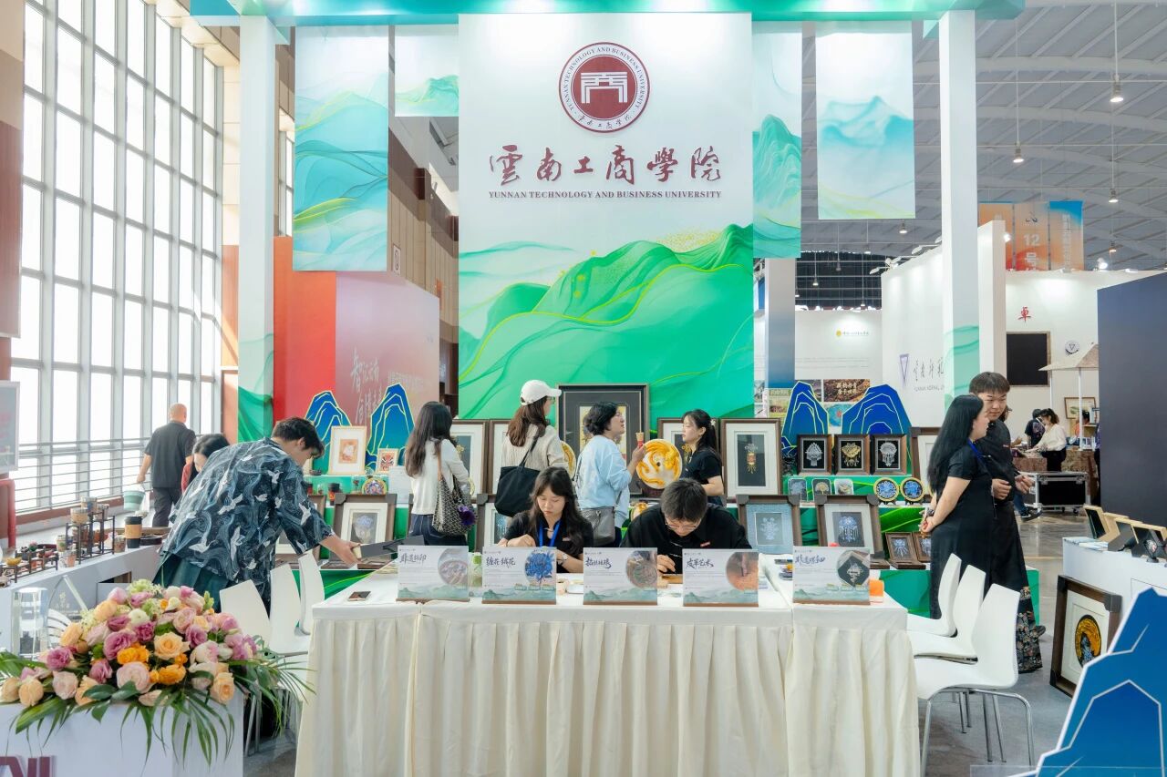 展会现场,云南工商学院展区以“非遗再生、设计赋能”为主题,集中呈现了包括“翠羽银丝”“彝绣创新”“木雕与皮艺”等多个系列的文创产品。这些作品不仅屡获国家级、省级奖项,更实现了从课堂到市场、从作品到产品的有效转化,体现出学校“应用型、创新型、数智化、国际化”相结合的办学定位。