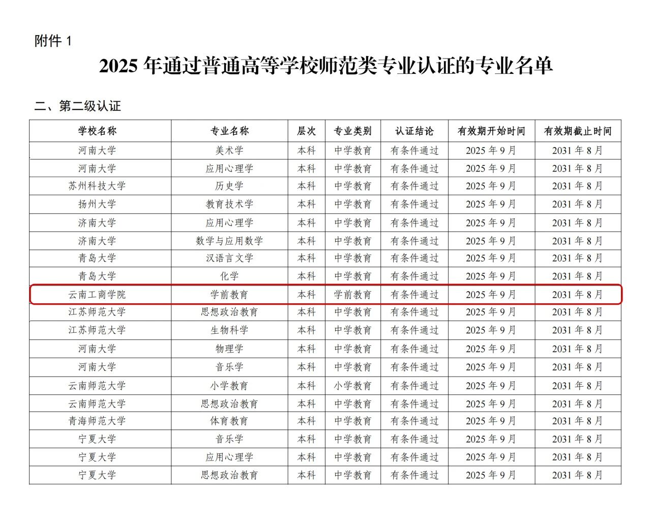 近日,教育部办公厅正式发布通知,云南工商学院学前教育专业通过普通高等学校师范类专业第二级认证。这一认证成果标志着学校学前教育专业人才培养质量获得国家权威认可,是专业建设历程中的重要里程碑。