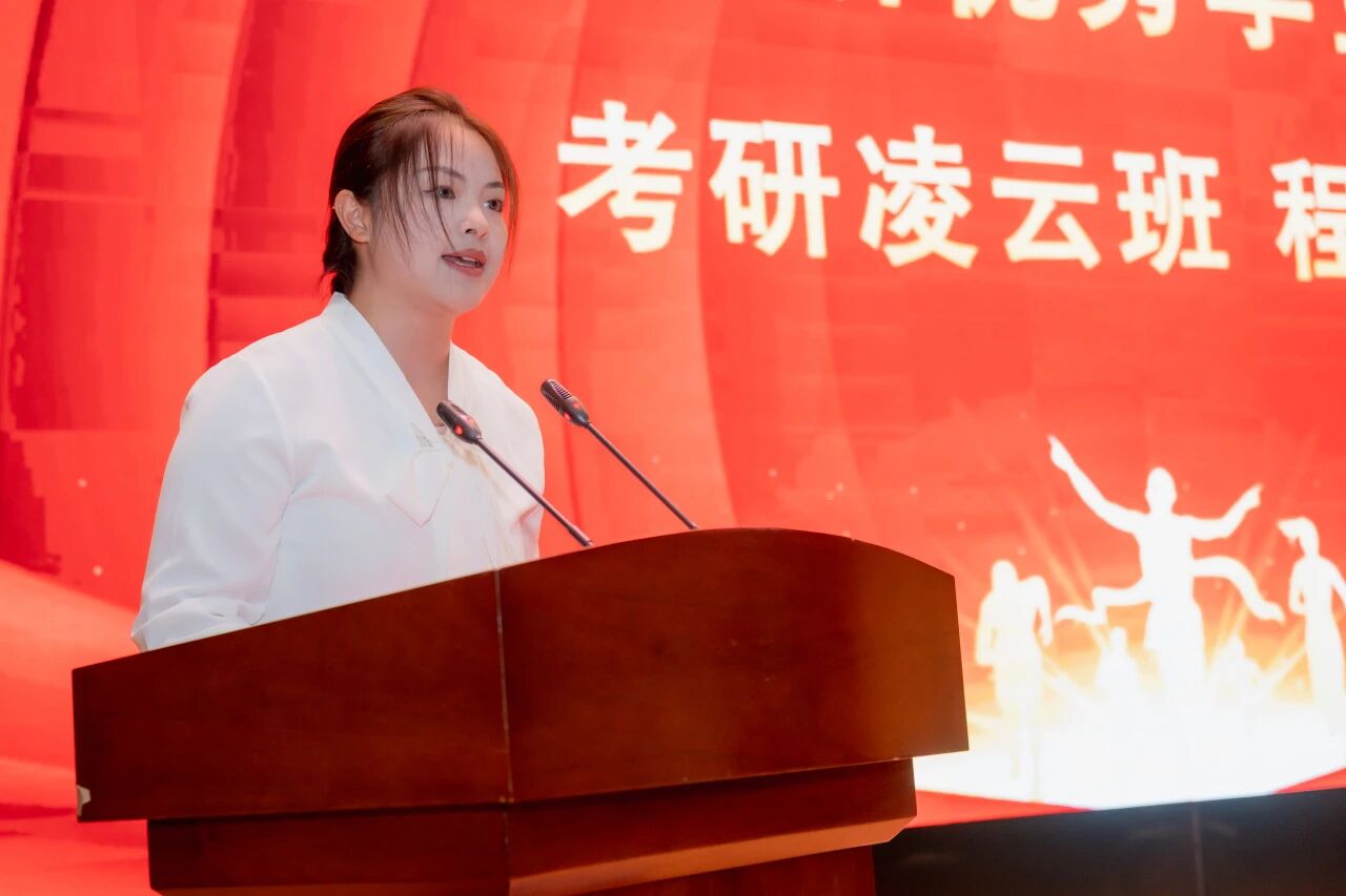2026届工商管理1班的程丽莎同学代表全体考研学子做冲刺表态发言,作为考研凌云班的一员,她对学校的悉心培养与老师们的无私付出表达了感谢。