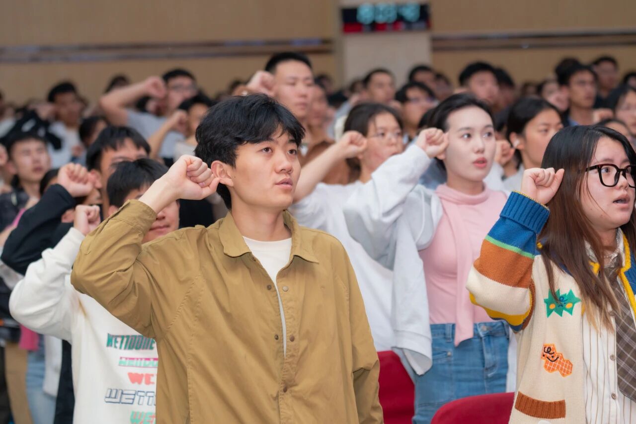 誓师大会现场,全体考研学子郑重宣誓:“我将以百日为期,为梦想做最后的跋涉!更静心、更专注,让知识沉淀为力量;更坚韧、更勇敢,让挫折转变为阶梯;更自律、更健康,让体魄支撑起雄心;更自信、更从容,让心态凝聚为光芒!披荆斩棘,不负韶华!百日冲刺,金榜题名!