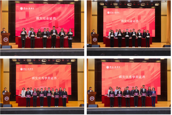 党委委员、纪委书记陈文琴宣读了“关于准予2025年下半年发展对象培训班学员结业暨表彰优秀学员的决定”。共154名学员按期结业,12名学员被授予“优秀学员”称号。与会领导为学员代表颁发结业证书,为优秀学员颁发优秀学员证书。