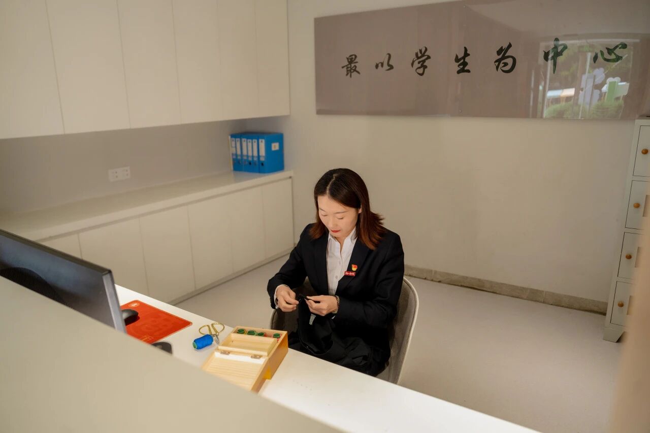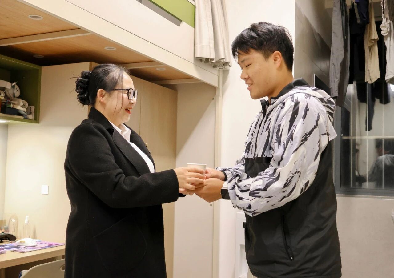 十年前,李世贤大学毕业,因为一份“愿意和学生打交道”的初心,她选择成为了一名学生公寓老师。“因为我也是从学生成长起来的,能更好感受到我们的学生需要什么。” 在她看来,公寓老师的职责远不止于管理。她的值班室里,那个装着针线、剪刀、工具的“服务百宝箱”常年都在,而且每学期都会根据学生的新需求“更新换代”。