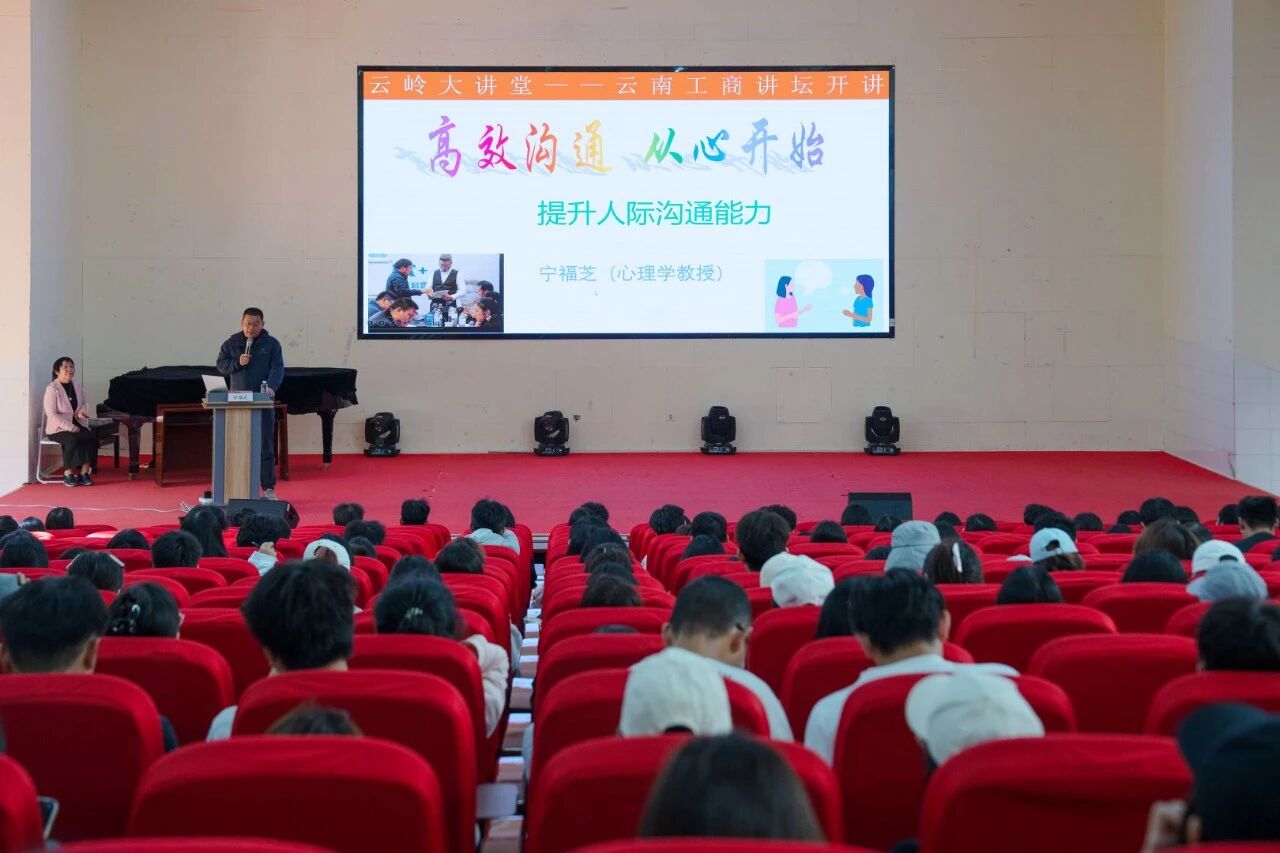 10月29日,云南工商学院“云岭大讲堂·云工商讲坛”系列讲座第十六讲温暖开讲,三百余名师生代表齐聚一堂,共同聆听了由昆明铁道职业学院宁福芝教授带来的《高效沟通,从心开始——人际和谐有效沟通方略》专题讲座,开启了一场关于“如何好好沟通”的探索之旅。讲座由学校党委副书记佘达文主持。