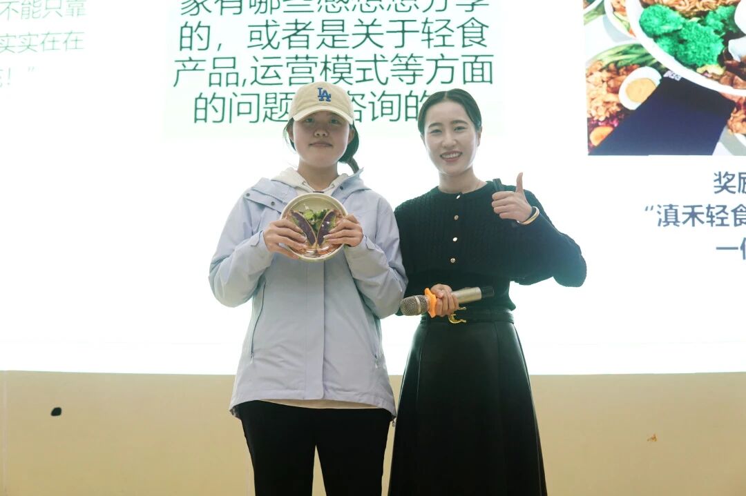 她还为积极参与提问的同学准备了10余份“滇禾轻食”明星套餐作为互动礼物,现场掌声不断,氛围热烈。