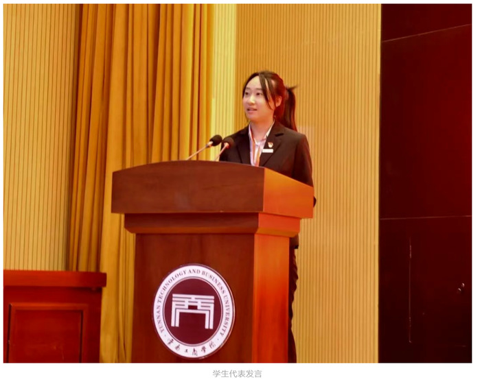 2022级小学教育专业学生高舒作为新学员代表发言。她衷心感谢学校党委、团委和老师们为青年成长搭建宝贵平台,并分享了自身对“青马工程”的深刻认识。她表示,“青马”不仅是一份荣誉,更是一份责任,是青年学子淬炼思想、提升能力、坚定信仰的重要契机。她代表全体学员郑重承诺,将努力成为“信仰坚定的追光者、本领过硬的实干家、勇于担当的奋斗者”,自觉践行习近平总书记对广大青年的殷切期望,以饱满热情投入学习,以实干精神践行使命,在理论滋养与实践锻炼中成长为有理想、敢担当、能吃苦、肯奋斗的新时代青年骨干。