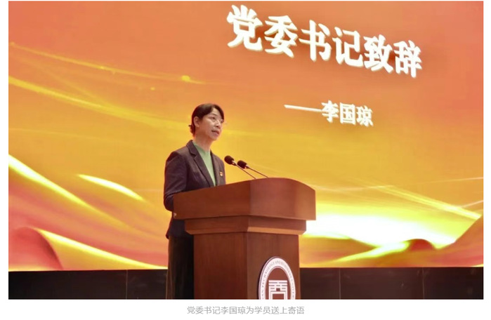 学校党委书记李国琼代表学校党委向入选本期培训班的学员表示祝贺,并向长期以来致力于“青马工程”培育工作的老师们表示感谢。她在讲话中指出,青马工程”是党保障事业后继有人的战略工程,也是学校引领青年思想、锻造骨干的核心平台。全体学员要在“学”字上下功夫,做到真学真懂、学深悟透;要在“信”字上求坚定,做到真信真坚、笃信笃行;要在“用”字上见实效,做到活学活用、知行合一;要在“行”字上作表率,做到严于律己、示范引领。自觉将个人的理想追求融入党和国家事业发展的宏伟蓝图之中,以青春之我、奋斗之我,在以中国式现代化全面推进中华民族伟大复兴征程中贡献智慧和力量,共同书写无愧于时代、无愧于人民的壮丽青春华章!