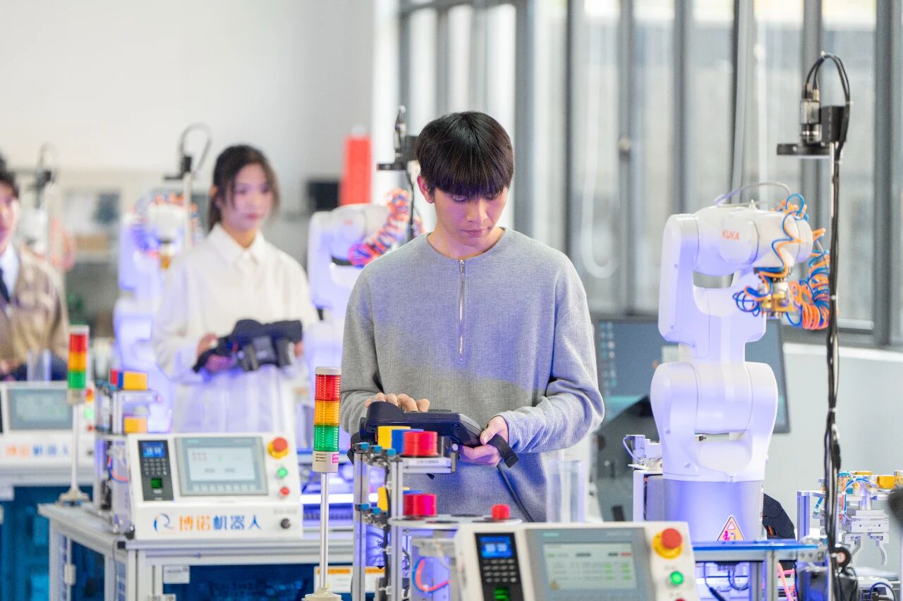 电气自动化专业学生在机器人创新实验室学习