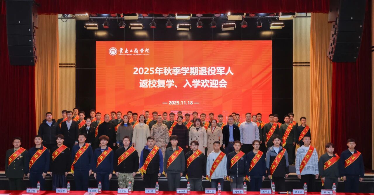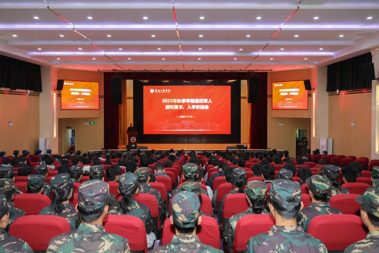 11月18日,2025年秋季学期退役军人返校复学、入学欢迎会在云南工商学院温情启幕。69名退役军人学子卸下戎装、怀揣初心,在师长的期许与战友的祝福中,正式开启从“军营战场”到“知识殿堂”的崭新征程。